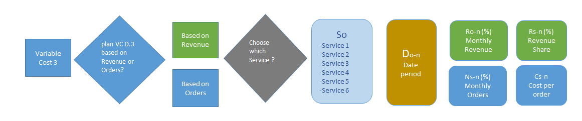 The Cost of goods sold or direct variable cost estimation is done through the Revenue sheet. The model of calculating such cost is a rather strait forward one.