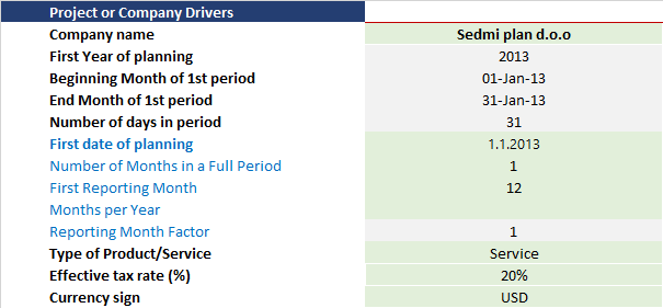 Type of product- choose Service if you develop a financial model for service, otherwise choose Product. The main difference is in product labels, but also in the calculation of stock for products.