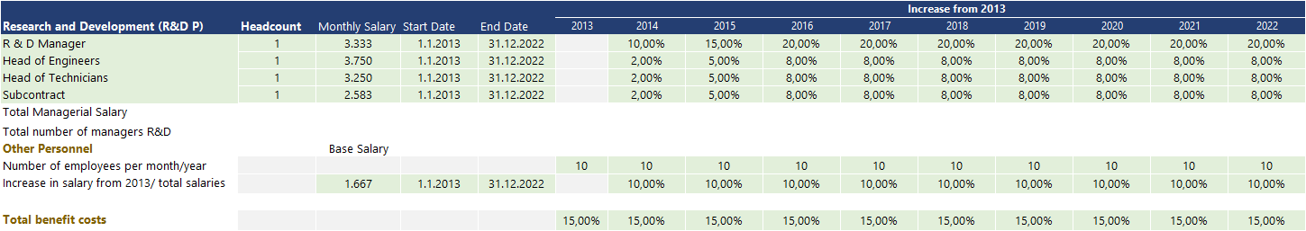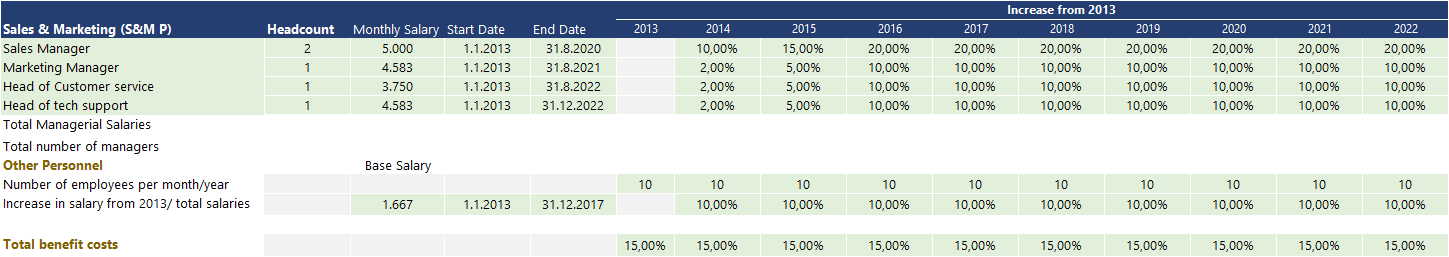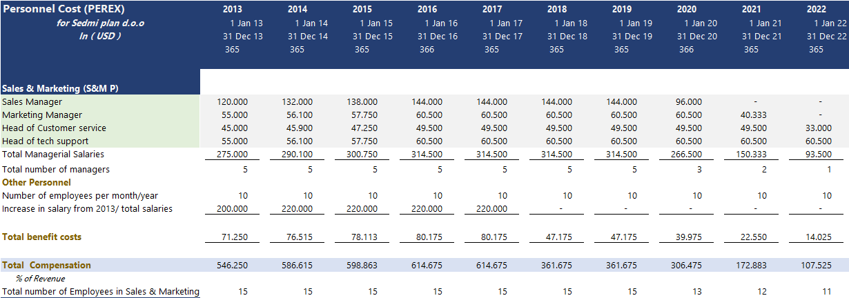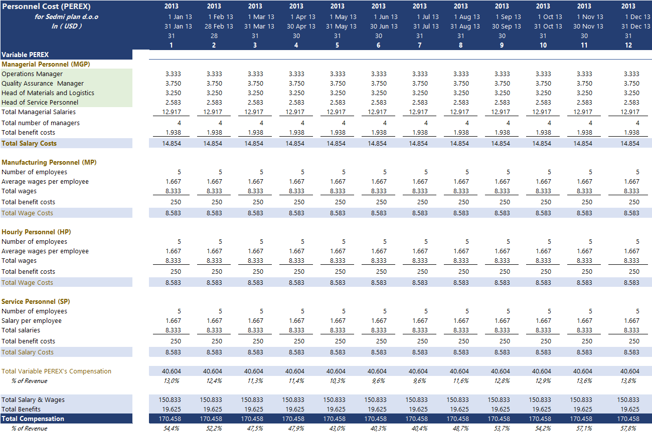 Variable Vs fixed cost: In terms of cost movement, General PEREX expenses are fixed costs that tend to move in the long run. The model has a build start and end dates for each individual position so you can tailor the Expense according to your hiring plans. Direct variable personnel expenses are a variable expense that tends to move along with the operational activity.