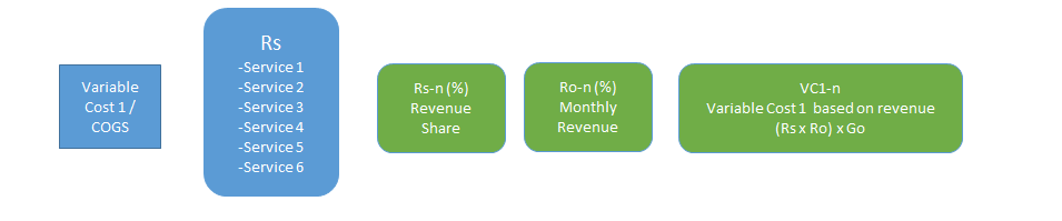 The Cost of goods sold or direct variable cost estimation is done through the Revenue sheet. The model of calculating such cost is a rather strait forward one.